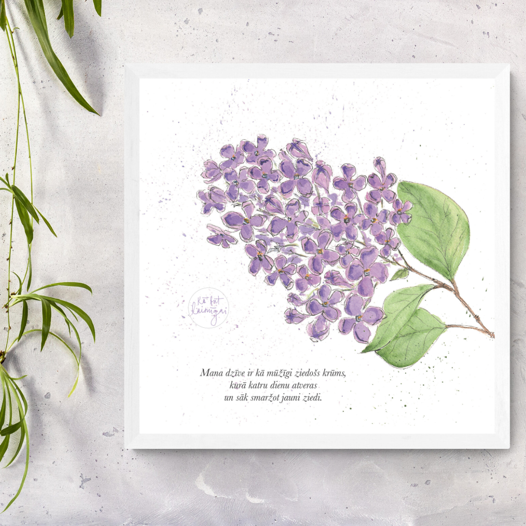 Attēls ar afirmāciju- laimīgais ceriņš.